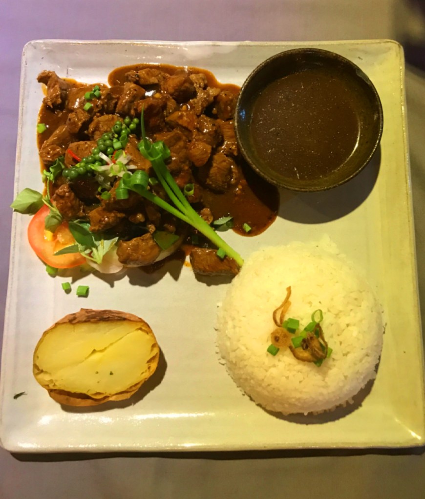 Beef loc lac: A signature dish of Cambodia! I’m a huge fan of pepper so I was thrilled to try this and it did not disappoint. The beef was very tender and the lime and Kampot pepper sauce was fantastic. You really don’t need to dress these flavors up or do anything to distract from the pepper sauce. I could eat that sauce every day on every dish!