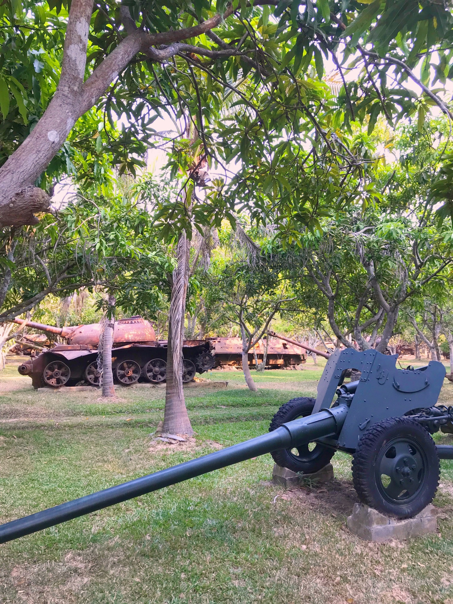 Saven personally walked us through the entire space telling stories along the way. This outdoor museum has a collection of war machines used and abandoned in the local fields by American, Chinese, Soviet, and Cambodian militaries. This museum created an alternative to scrapping that allows for education and ongoing jobs for people in maintaining the place and everything in it, while also removing dangerous military equipment and cleaning up the land. The old tanks and planes and things were all interesting to look at, but the stories we were told about the experiences this guy and his family members had during the war are what we really remember.