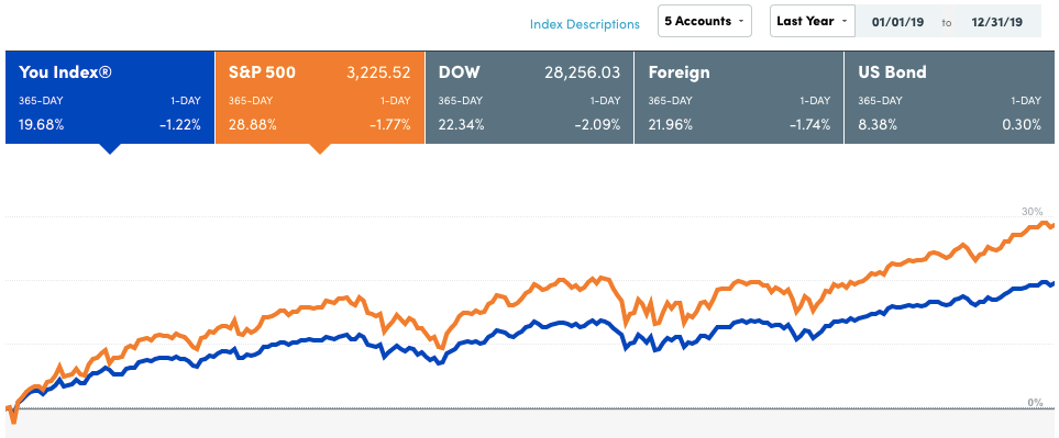 This is an illustration of our 2019 portfolio growth from Personal Capital. It was stunning to watch our portfolio grow as the S&P climbed an amazing 28.88% last year.
