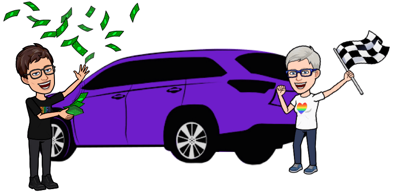 Meeting our sales agent was actually kind of fun. In the past we have interacted with sales people that treated us poorly and clearly couldn’t cope with the fact that we are lesbians so we were prepared to walk away if that type of thing happened again. I even looked our sales agent up online before we arrived and found his Facebook and other social media open to the public and there was no sign of anything shared publicly that would be offensive to us. We feel very strongly about supporting people and businesses that fit with our values, and we try to avoid giving our money to those that don’t. We were glad to meet a sales agent who was not pushy, made no effort to upsell us, was wearing a face mask and gave us lots of personal space, and also proved to be very respectful to both of us as individuals and joint owners of our new car. Good news y’all, there are decent car sales people out there!